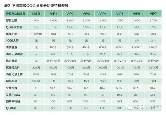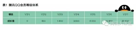 介绍一下,QQ会员等级体系设计了7个等级(表1),每个等级对应不同权限的匹配特权,会员要实现等级提升只能熬时长,即只能依靠每日成长值的累积实现升级。例如,会员每日成长值为5,从VIP1提升到VIP2,需要累积600成长值,就需要熬上120天,也即连续缴纳4个月的会员包月费。确实,建立等级体系最核心的目的在于通过用户预期来拉升用户的生命周期。说明一个优秀的等级体系必须做到:满足当前用户的基本需求、能给予未来预期、增加流失成本。