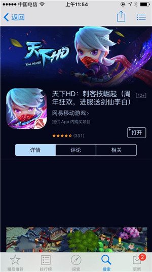 【与梦幻大话同获殊荣 《天下HD》专属定制下载页面上线】 App Store专属定制下载页面是苹果给予顶级大作的特殊待遇,也是对游戏品质与成绩的高度肯定。此前,网易两款自研王牌手游《梦幻西游(微博)》和《大话西游》先后获此殊荣,此次网易首款3D动作冒险手游《天下HD》专属定制页面的上线,更是意味着网易游戏在坚持高品质游戏开发道路上又迈出了意义非凡的一步。