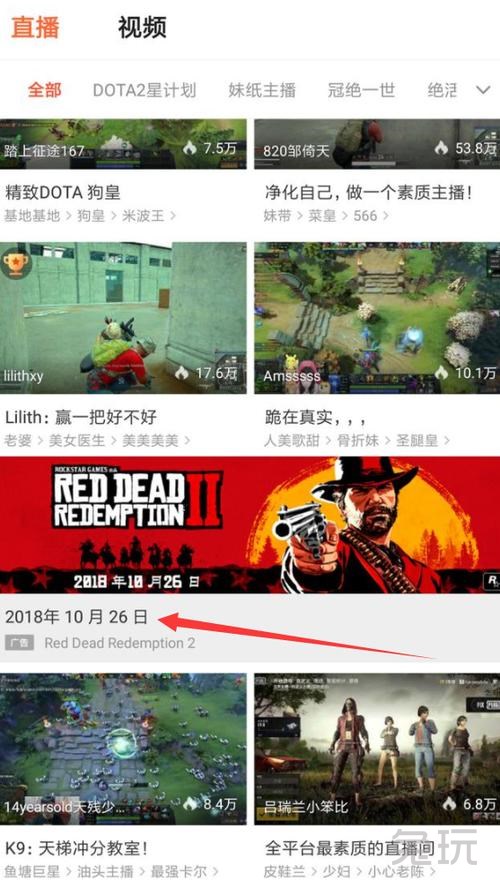 今年10月份发售的R星《荒野大镖客2》也是一个案例,当时斗鱼APP上的《荒野大镖客2》广告可以直接链接官网,除了在APP端的广告投放,斗鱼主播们的推荐和预热也是一种有效的宣传方式。在广告投放之前的一段时间,斗鱼主机区的头部主播寅子就开始轮流直播太吾绘卷、刺客信条和荒野大镖客,为即将上市的《荒野大镖客2》预热。