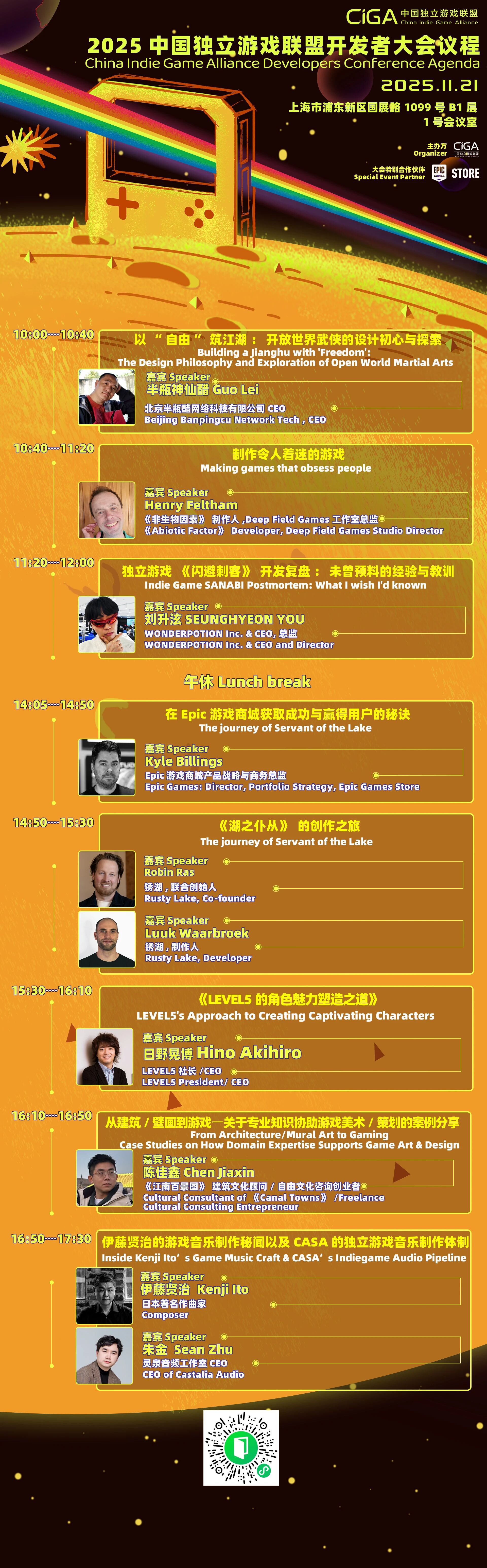 2025 CiGA中国独立游戏联盟开发者大会完整议程现已公开!CiGADC一直致力于带给与会者行业最前沿、高价值的内容分享。